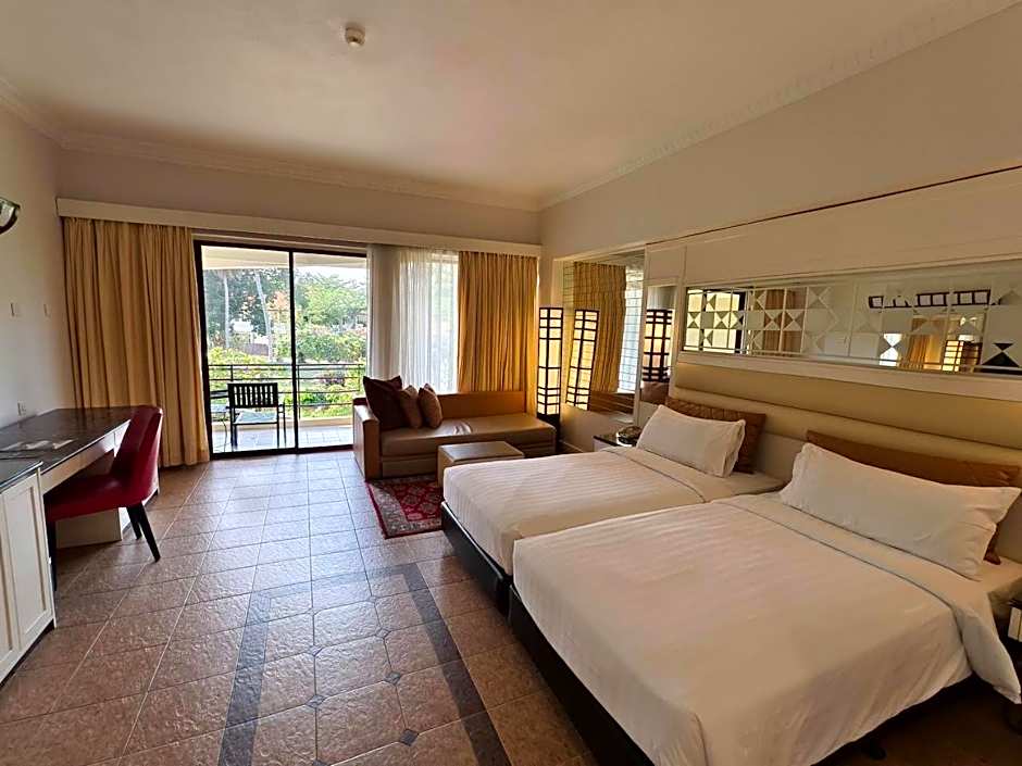 Providing free toiletries, this twin room includes a private bathroom with a shower, a bidet and a hairdryer. The spacious air-conditioned twin room provides a flat-screen TV with satellite channels, soundproof walls, a mini-bar, a seating area as well as garden views. The unit offers 3 beds.
