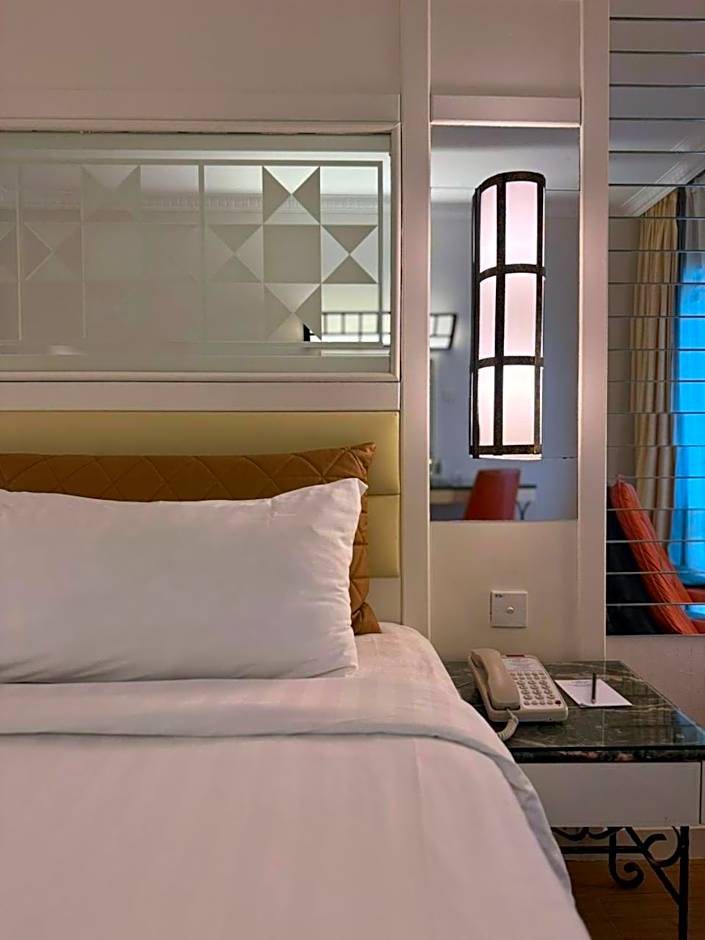 Deluxe Premium is 344 square feet and includes either a king-size bed 150-183 width or 2 single beds 80-130 width plus desk, satellite tv , hairdryer, tea and coffee making facilities , and safe.
